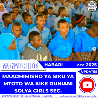 Manyoni, Oktoba 11, 2025 – Shule ya Sekondari ya Wasichana Solya imeandikisha historia kwa kuwa mwenyeji wa Maadhimisho ya Siku ya Mtoto wa Kike Duniani, yaliyojaa hamasa, elimu, ushawishi na midahalo yenye lengo la kuinua hadhi ya mtoto wa kike katika jamii.